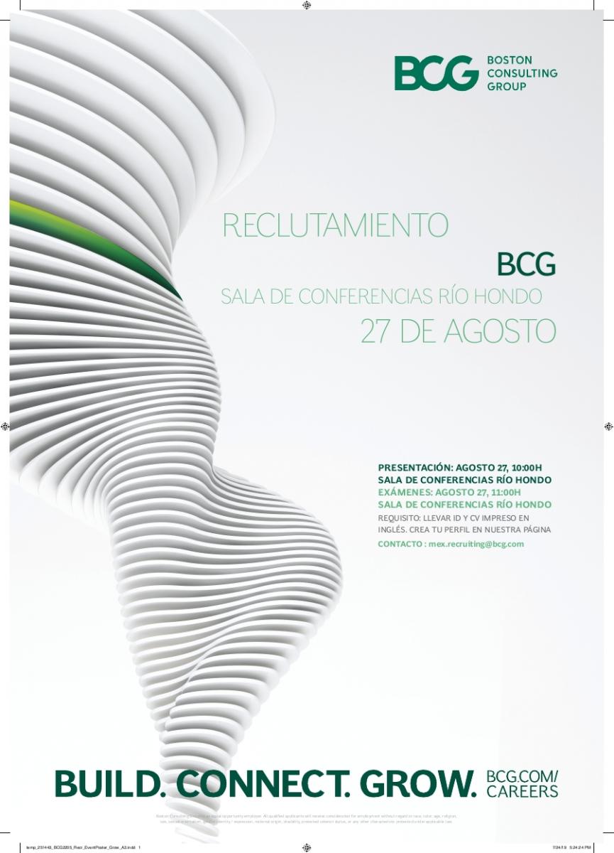 Boston Consulting, en conjunto con la Bolsa de Trabajo, invita a su presentación y aplicación de examen, dirigido a alumnos que estén en su penúltimo o último año para graduarse y exalumnos (máximo 2 años de experiencia) de todas las licenciaturas e ingenierías.