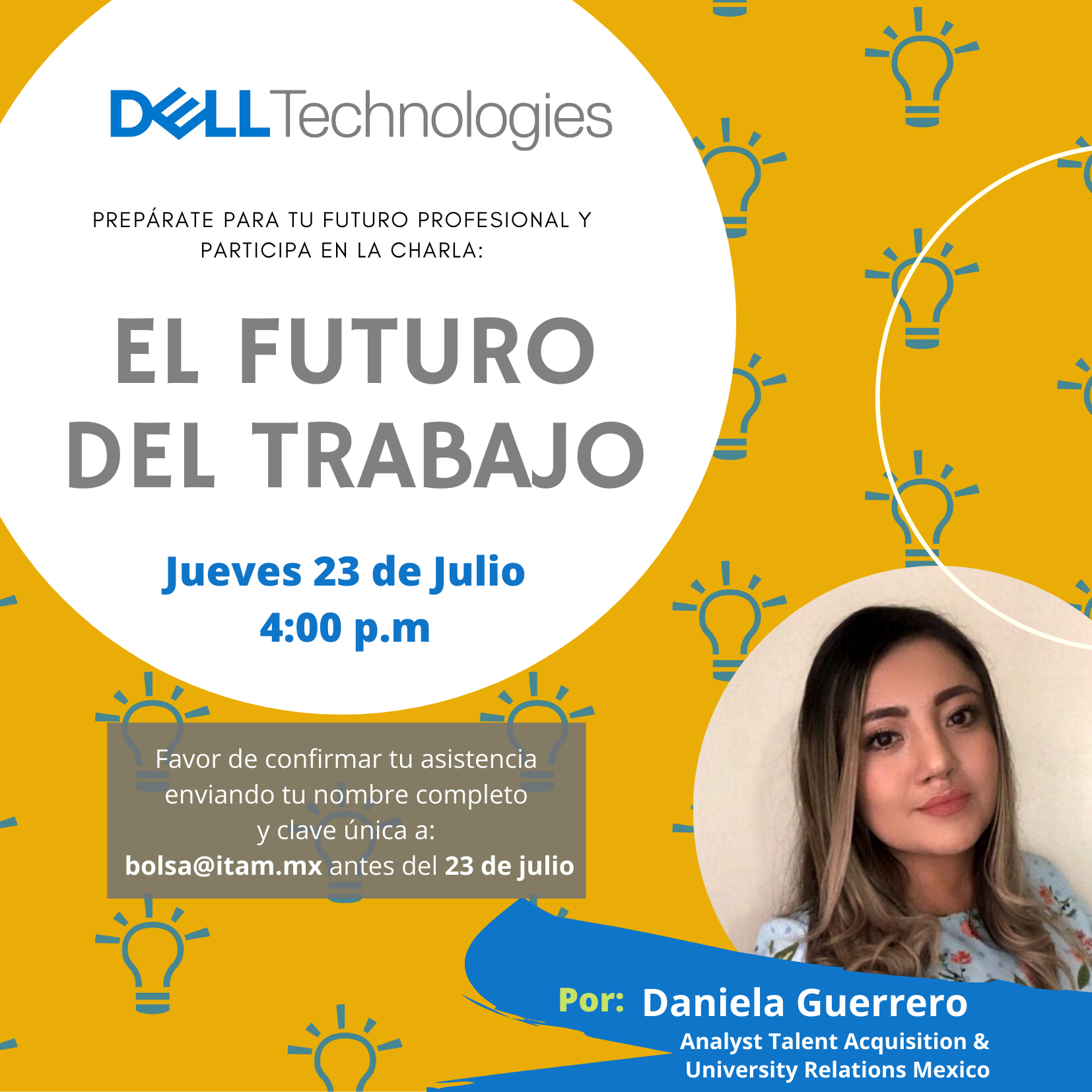 Dell Technologies en conjunto con la Oficina de Career Services del ITAM te invita a la presentación de su webinar "El futuro del trabajo", dirigido a todos los alumnos y exalumnos de todas las licenciaturas e ingenierías.